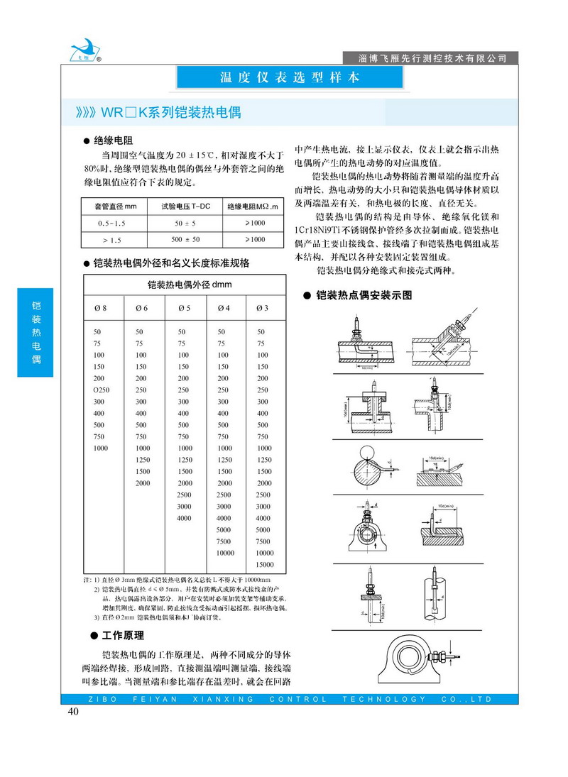 鎧裝熱電偶具有能彎曲、耐高壓、熱響應(yīng)時(shí)間快和堅(jiān)固耐用等許多優(yōu)點(diǎn).它和工業(yè)用裝配式熱電偶一樣,作為測量溫度的傳感器,通常和顯示儀表.記錄儀表和電子調(diào)節(jié)器配套使用,同時(shí),亦可作為裝配式熱電偶的感溫元件。它可以直接測量各種生產(chǎn)過程中從0C~800℃范圍內(nèi)的液體、蒸汽和氣體介質(zhì)以及固體表面的溫度。