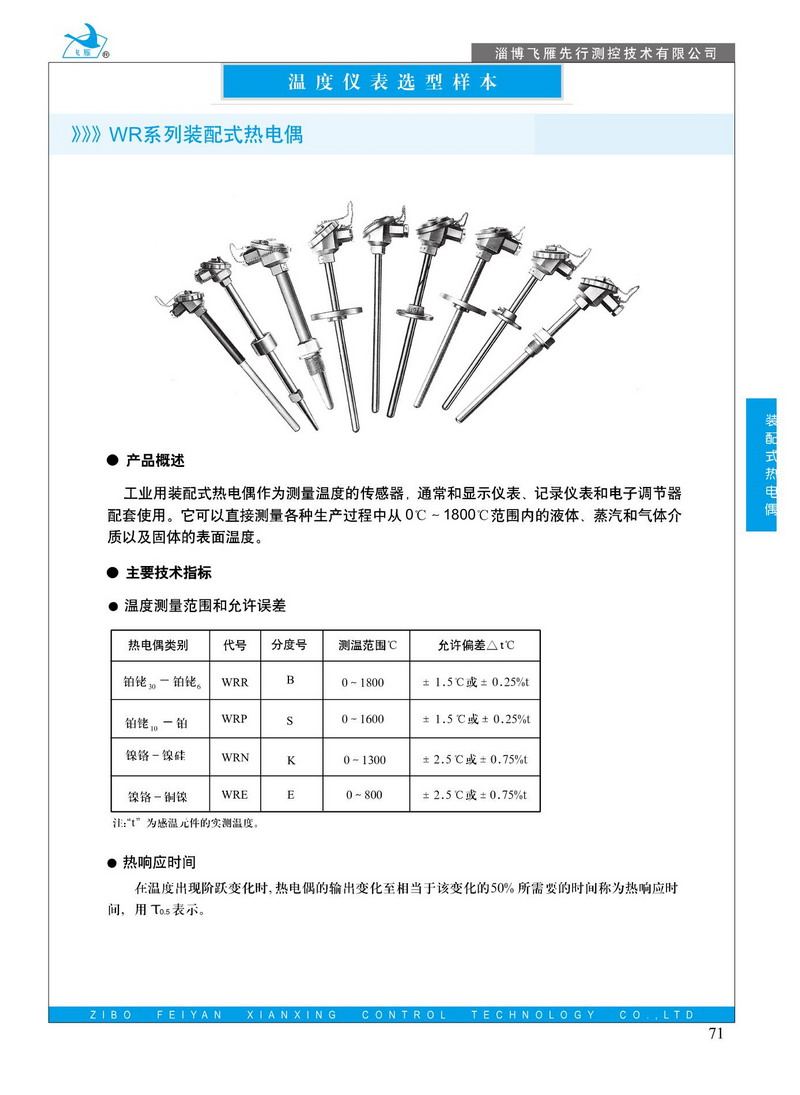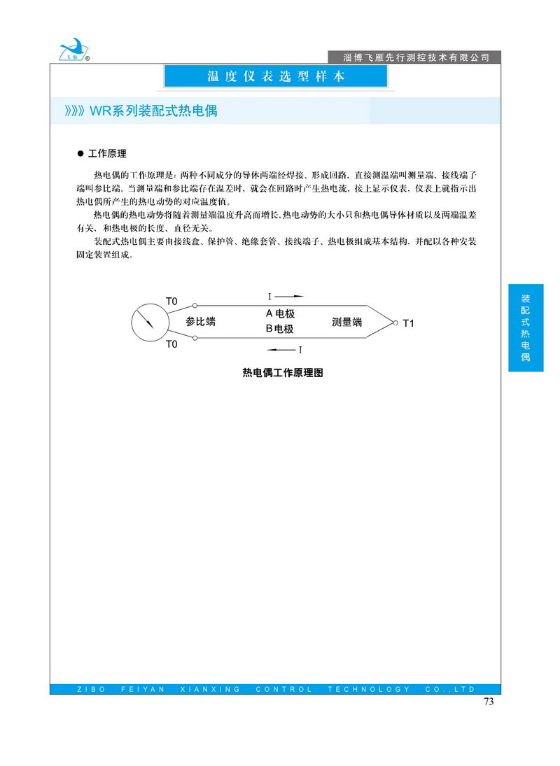 工業(yè)用裝配式熱電偶作為測量溫度的傳感器,通常和顯示儀表、記錄儀表和電子調(diào)節(jié)器配套使用。它可以直接測量各種生產(chǎn)過程中從0℃~1800℃范圍內(nèi)的液體、蒸汽和氣體介質(zhì)以及固體的表面溫度。